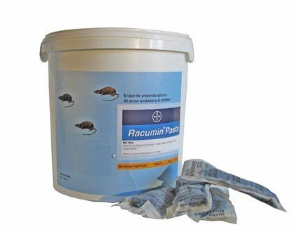 Средство родентицидное «Ракумин-паста» (0,0375%) (далее «Средство») представляет собой тесто синего цвета, содержащее в качестве действующего вещества куматетралил (0,0375%). «Ракумин-паста» (0,0375%) - готовая к применению отравленная приманка. Испытания биологической активности подтвердили высокую эффективность и показали 100% гибель крыс и 50% гибель мышей. Отравленные приманки со средством «Ракумин-паста» (0,0375%) применяют для борьбы с серыми и черными крысами и снижения численности домовых мышей в жилых и нежилых помещениях, на промышленных объектах, на складах, в не застроенных и застроенных и застроенных частях населенных пунктов.