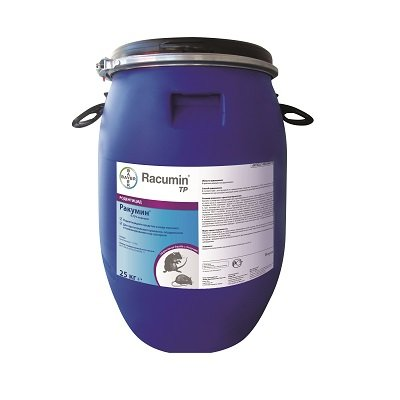 Средство «Ракумин» представляет собой мелкодисперсный порошок серого цвета, содержащий в качестве ДВ – (куматетралин – 0,75%.). Срок годности средства – 2 года.