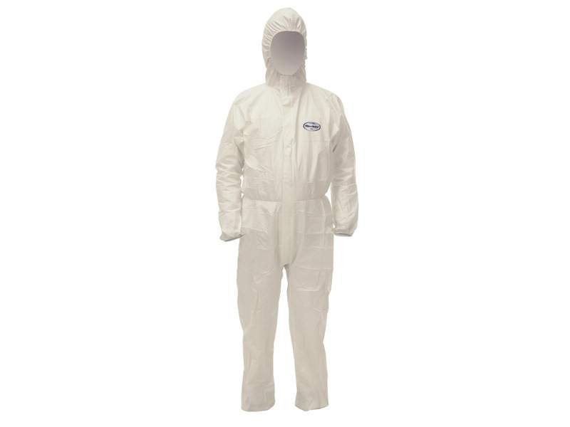 Комбинезон белого цвета для защиты от жидких аэрозолей, брызг и капель, а также твердых частиц, размеры L, XL, XXL