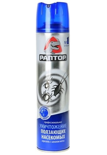 Аэрозоль "Раптор" от ползающих насекомых, профессиональное уничтожение с запахом мяты 350мл. Эффективное средство против тараканов, муравьев, пауков, клопов, блох и других ползающих насекомых. Мгновенное действие и продолжительный эффект.