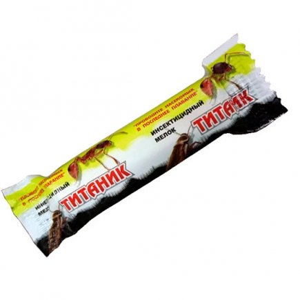 Препарат «Титаник» выпускается в виде мелового карандаша, содержащего в качестве действующих веществ пиретроид циперметрин в количестве 0,1% и фипронил в количестве 0,04%. В его состав входят также инертные наполнители мел, каолин и гипс. Препарат «Титаник» представляет собой меловой карандаш произвольного сечения белого, желтого, голубого, фиолетового цвета. Обладает инсектицидной активностью по отношению к тараканам, муравьям, клопам, блохам, мухам (при обработке мест их посадки).